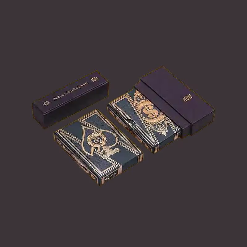 We at Custom Boxes Empire are proud to introduce our Black Playing Card Box, designed specifically for those who take their card games seriously. This sturdy box is made from high-quality paperboard that can withstand the rigors of frequent use and handling. Its sleek and modern design makes it a perfect fit for any home game night or professional poker tournament.nnThe Black Playing Card Box is available in three different sizes to accommodate various deck sizes and preferences. Whether you use a standard deck or a jumbo one, we have a size that fits your needs. The box is made to keep your cards organized and easy to access, with separate compartments for the deck and any cards you've removed from the game.nnOne of the standout features of our Black Playing Card Box is its durability. The sturdy paperboard construction ensures that it can withstand the wear and tear of frequent use. The box also comes with a secure closure system that keeps your cards safe and secure, even when you're moving around or storing the box.nnWe understand that presentation matters, and that's why our Black Playing Card Box is designed to make a statement. The sleek, modern design is perfect for professional poker tournaments or home game nights. The box is also customizable, allowing you to add your name, logo, or message to make it a unique and personalized gift.nnAt Custom Boxes Empire, we're committed to providing high-quality products that meet the needs of our customers. Our Black Playing Card Box is no exception. With its durable construction, customizability, and sleek design, it's the perfect choice for anyone who takes their card games seriously. Order your Black Playing Card Box today and experience the difference for yourself!