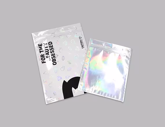 At Custom Boxes Empire, we understand the importance of protecting and presenting your valuable items in a unique and attractive way. That's why we offer you our Holographic Mylar Bags, a premium packaging solution that will help you stand out in the market.nnHolographic Mylar Bags are made from a special layer of holographic foil that is applied to our high-quality Mylar bags. This creates a eye-catching effect that appears to shift and change colors when viewed from different angles, making your products look like a million bucks. The holographic foil is also damage-resistant and can withstand scratches and scuffs.nnThe Mylar material used in these bags is also very durable and provides excellent protection for your items. It is resistant to moisture, humidity, and other environmental factors that can cause damage or corrosion. This makes our Holographic Mylar Bags ideal for packaging food, spices, tea, coffee, and other sensitive products.nnWe also offer customization options for our Holographic Mylar Bags, including different sizes, shapes, and designs. You can choose from a variety of colors and patterns to match your brand identity, product packaging, or personal preferences. Our bags are also resealable, making it easy to open and close them multiple times without compromising their integrity.nnWhether you're a small business owner, entrepreneur, or someone looking for a unique way to package your items, our Holographic Mylar Bags will help you make a statement. They are perfect for packaging gift items, jewelry, collectibles, and other small items that require special care and attention. At Custom Boxes Empire, we are committed to providing you with high-quality products that meet your needs and exceed your expectations.nnOur Holographic Mylar Bags are available in a range of sizes and quantities to suit your specific needs. You can order them in bulk or individually, and we offer special discounts for bulk orders. Contact us today to learn more about our Holographic Mylar Bags and other premium packaging solutions.